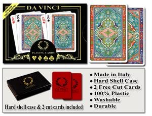 Da Vinci 100 Plastic playing cards are the worlds finest playing cards Da Vinci cards are designed and manufactured in Italy by Modiano Since 1868 the Modiano brand has been synonimous with quality playing cards Da Vinci plastic playing cards are manufactured using the finest plastic and are c Read More..